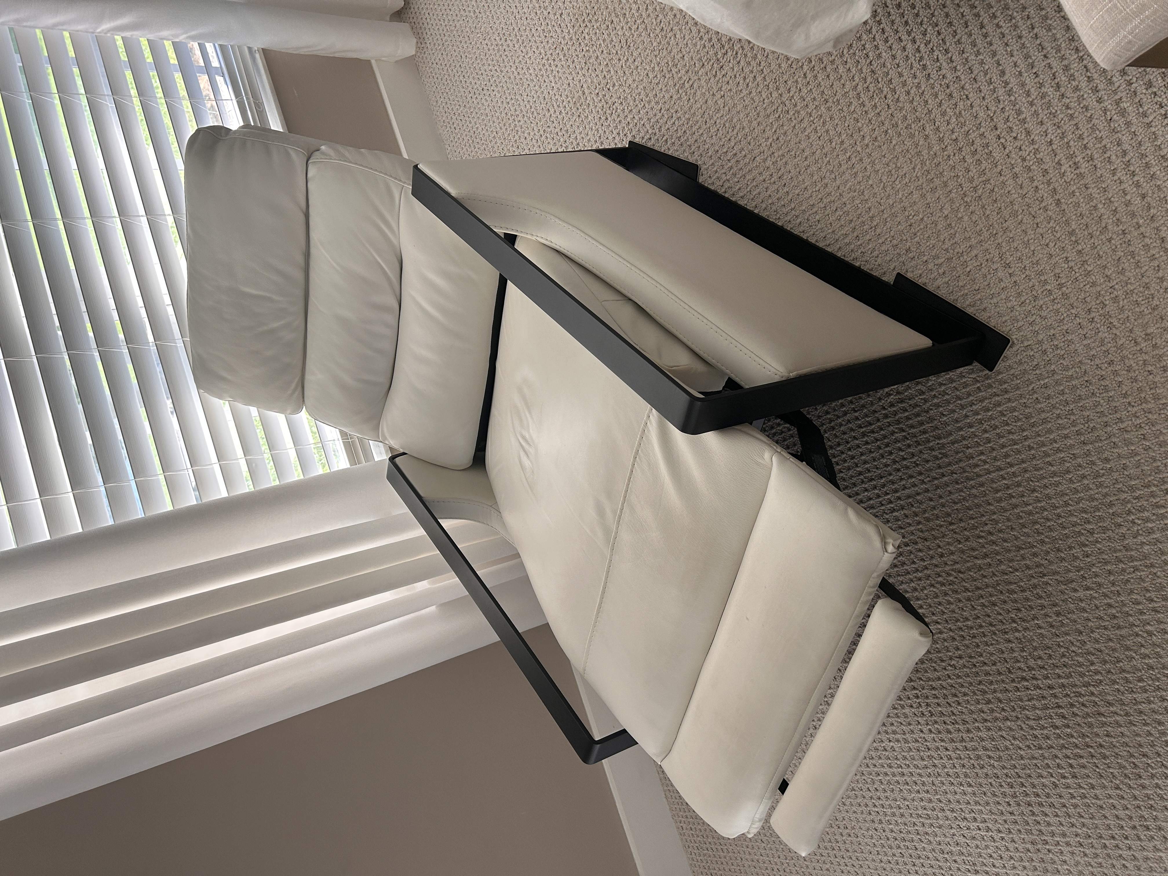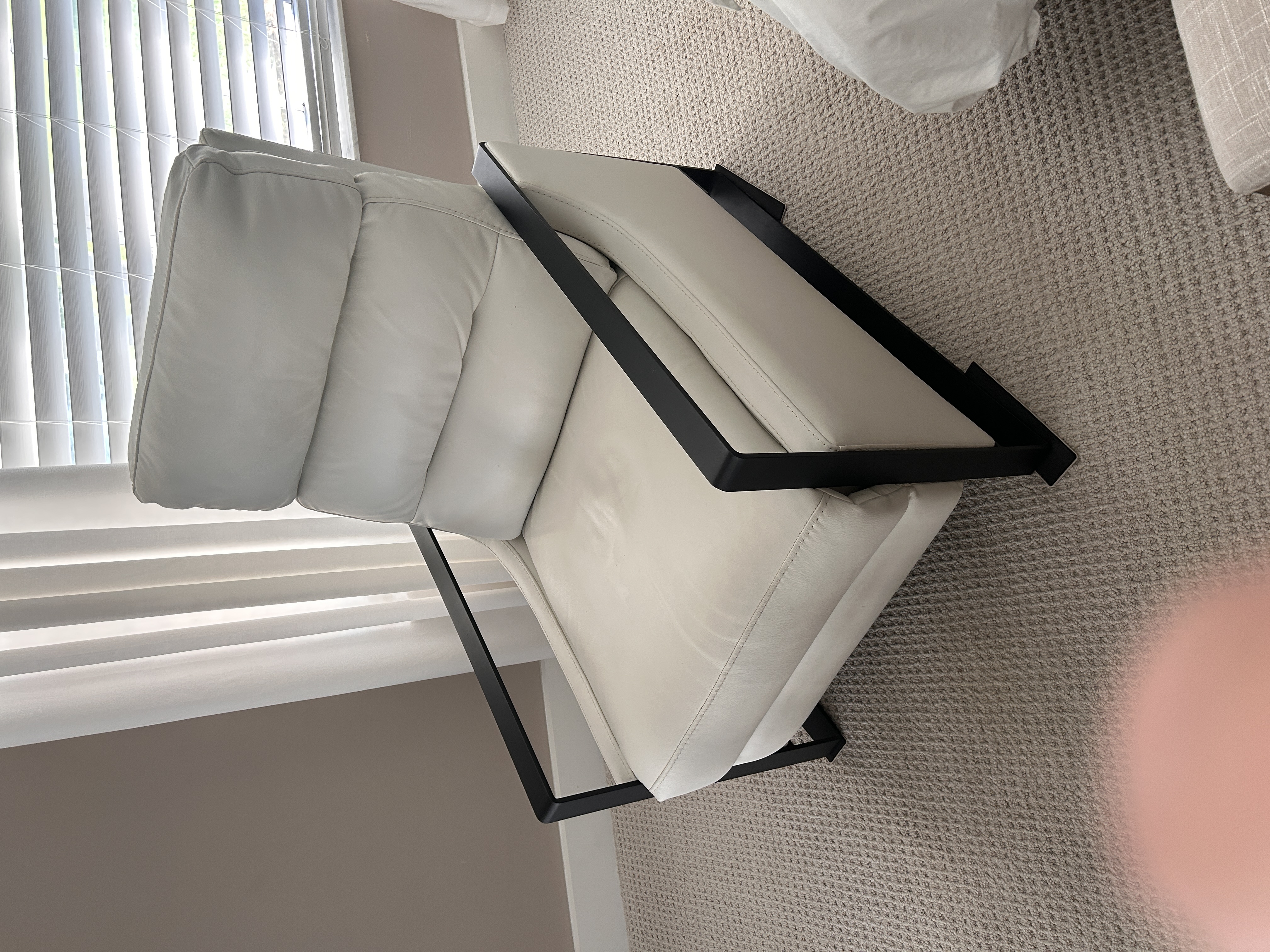Ivory Leather Recliner – $500 Elegant and ultra-comfortable electric recliner in like-new condition. Soft ivory leather, bronze-coated arms and legs. Purchased from City Furniture for $1,100, gently used over 2 years. • Dimensions: 26"W x 35"D x 41"H (extends to 67"L) • From a clean, smoke-free home Stylish, well-built, and a steal at this price. | |||